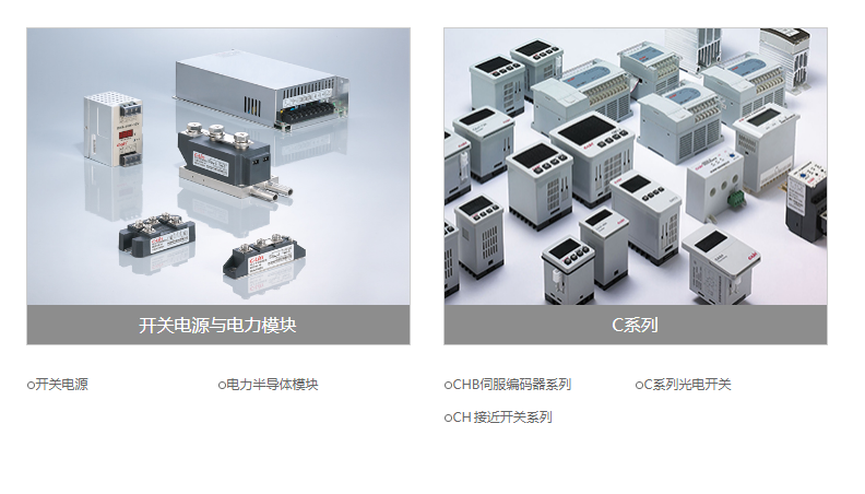 主要产品:继电器系列 开关按钮信号灯 传感器 断路器 接触器 变频器 伺服驱动 伺服电机 电机调速 软启动 HMI 开关电源 PLC 温湿度控制 数显电量表 电涌保护器 电力半导体模块 智能除湿器等