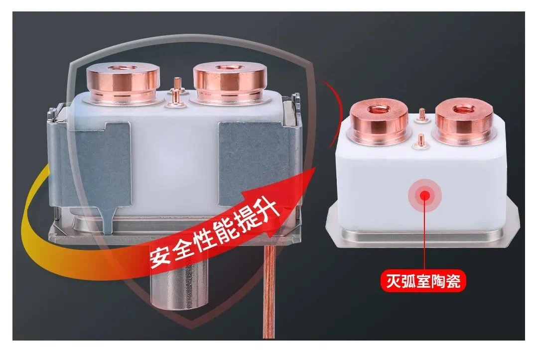产品灭弧室采用陶瓷结构,密封性能优越,耐温等级显著提高,安全性能有保障。
